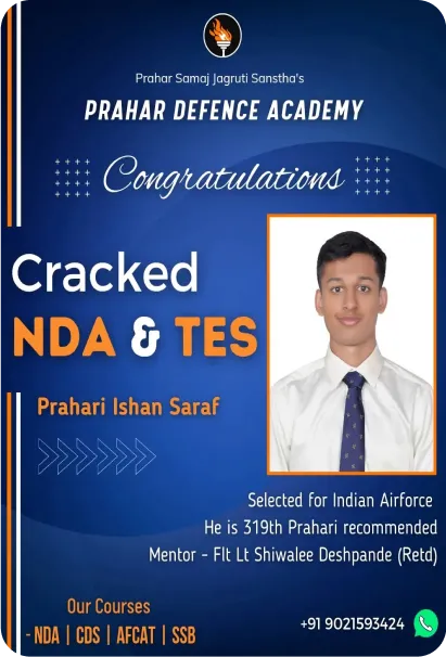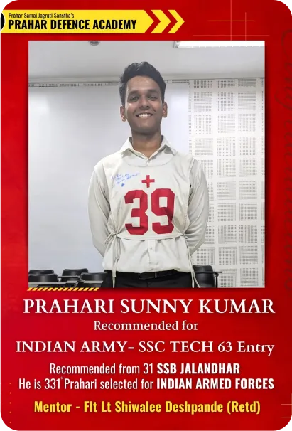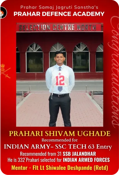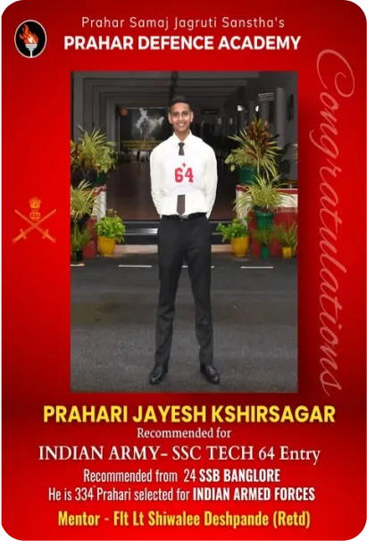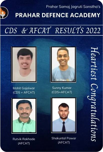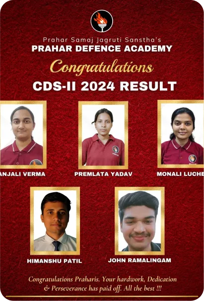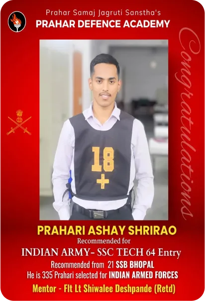 Prahar Defence Academy is an initiative of Prahar Samaj Jagruti Sanstha, Nagpur. We provide you with the best training and guidance for Indian Armed Forces Entrance Exams and Service Selection Board Interview.